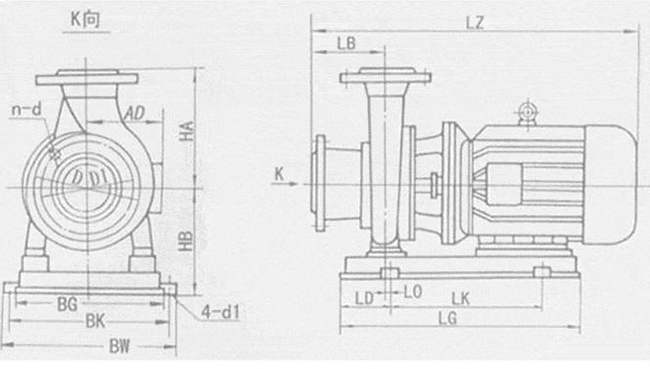4、lSWB臥式管道油泵,供輸送汽油、煤油、柴油等用油類產品或易燃、易爆液體,被輸送介質溫度為一20~C~+120℃。