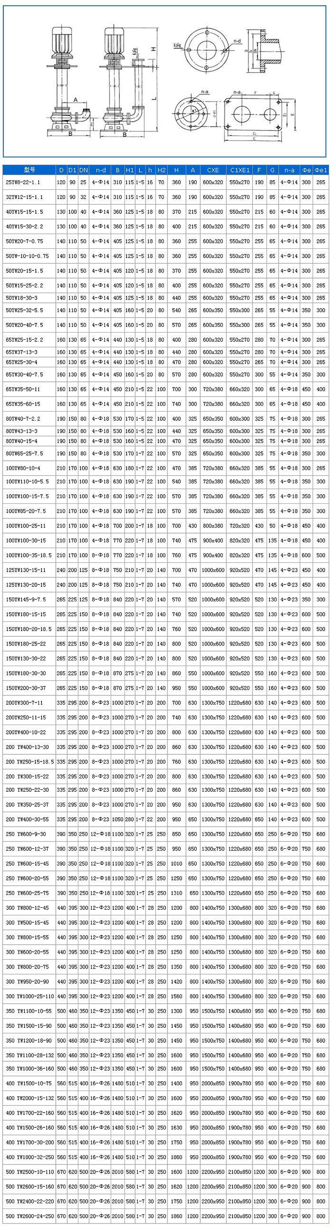 6、泵為立式結構,工作時泵體浸在液體中因而很容易起動,不存在排氣抽空問題,同時具有無泄漏等特點,液下深度可達15米。