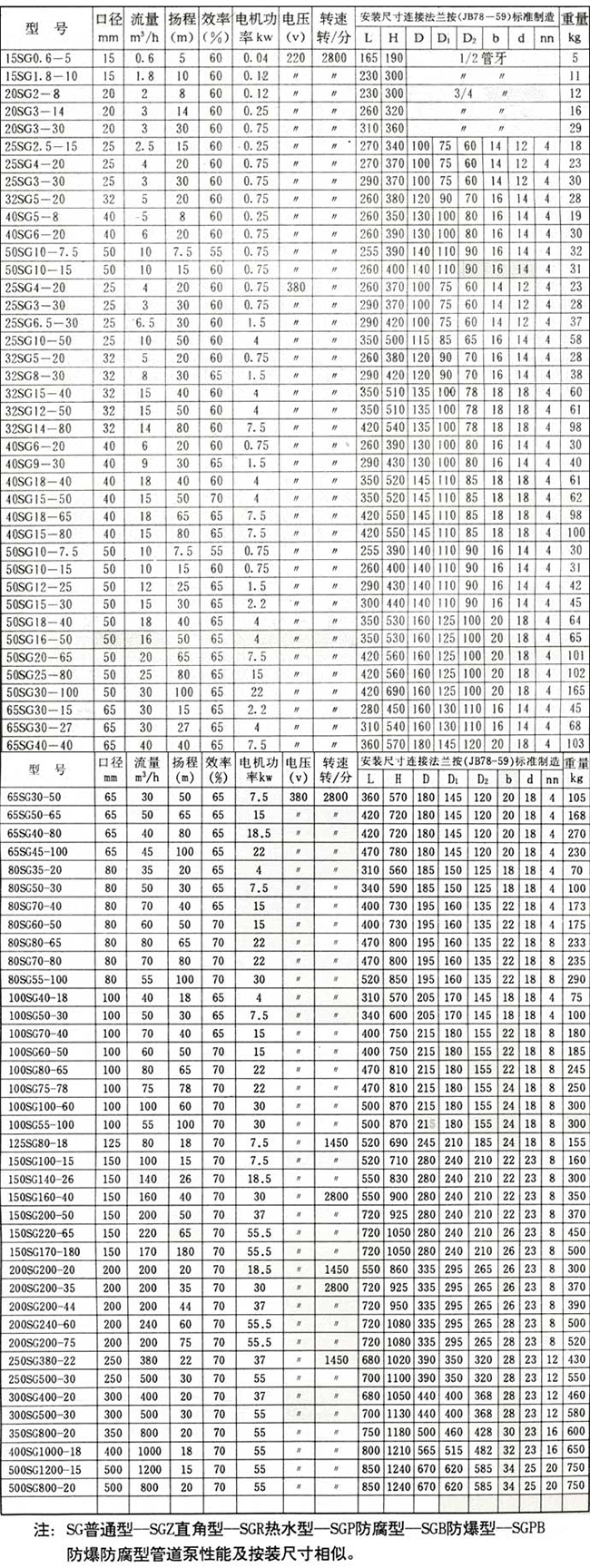 2.SGR系列熱水管道泵適用于采暖、鍋爐等行業的高溫熱水增壓循環。使用溫度150℃以下。