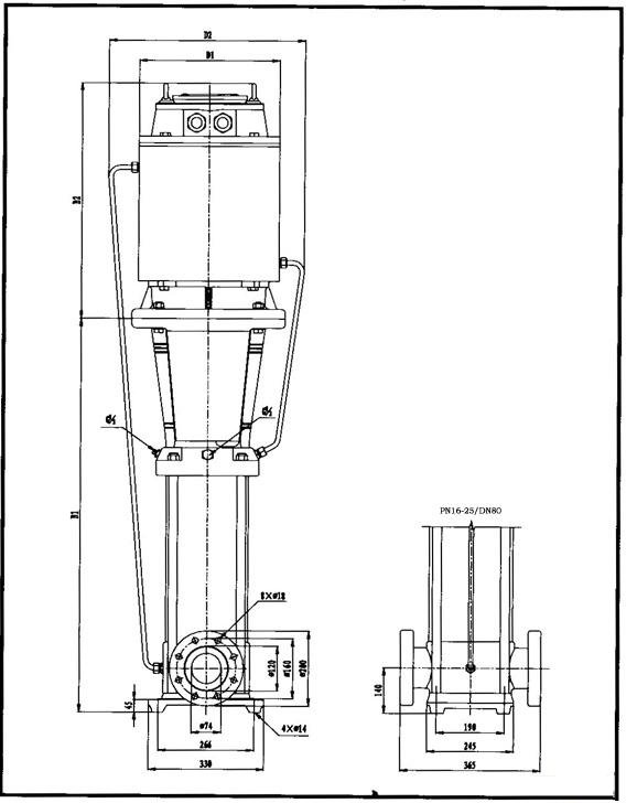 | DIN法蘭 | DN40 | DN50 | DN50 | DN65 | DN80 | DN100 | DN100 | ||||||